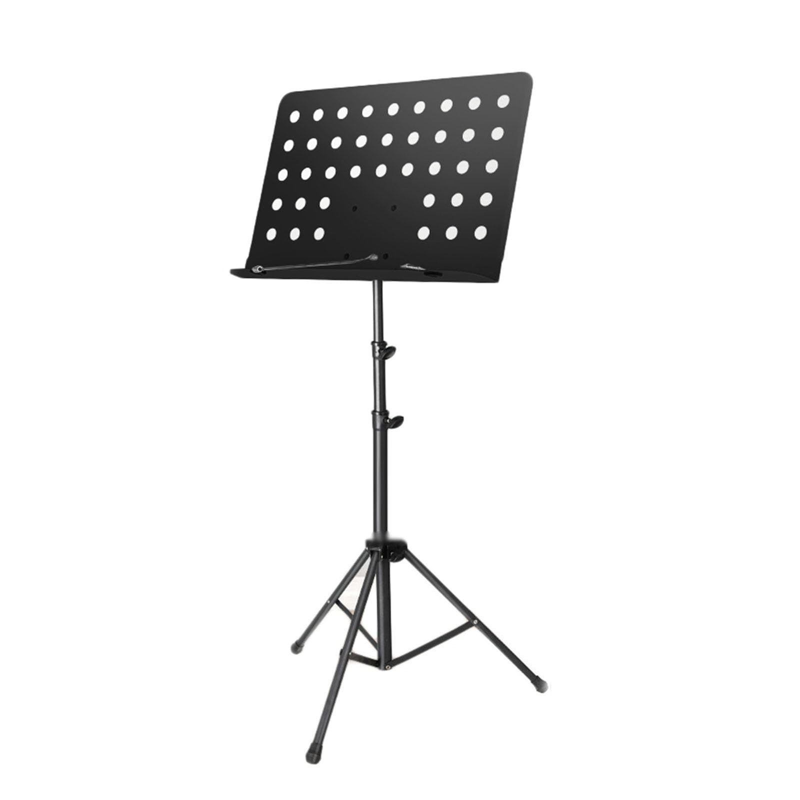 Mbajtëse notash muzikore metalike, e rregullueshme në lartësi dhe kënd, me bazë të qëndrueshme trefishe. Ideale për praktikë, prova dhe performanca për instrumentistë dhe këngëtarë. 🎶
