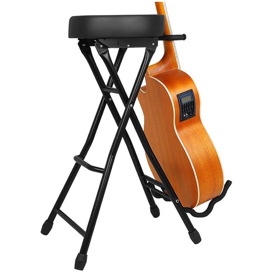Komoditet dhe stil në çdo lojë 🎸 Ulëse dhe mbajtës për kitaristë, dizajn ergonomik dhe i qëndrueshëm për çdo provë ose performancë.”